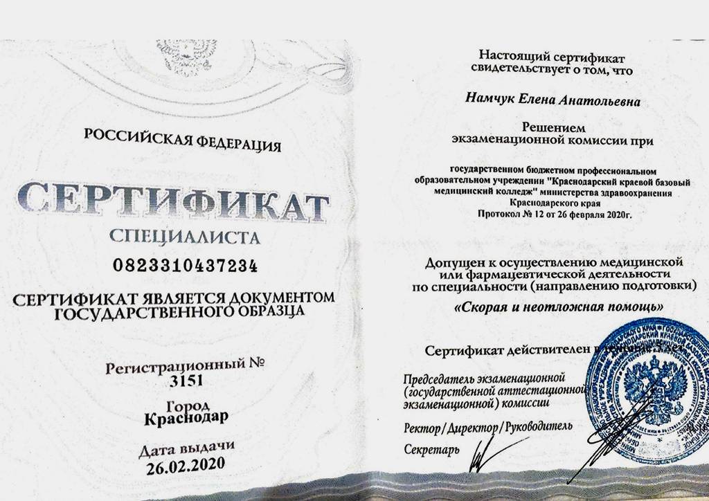 Фотография врача Намчук Елены Анатольевны